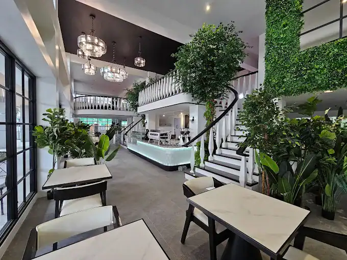 The space is two levels with a grand staircase and floor-to-ceiling greenery. The food menu is better than you’d expect. Actual meals, not just pastries and sandwiches. It’s located in Balibago, making it a good option if you’re already on that side of the city.