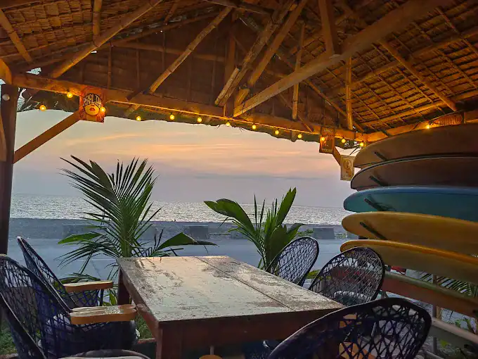Right on the shore in San Narciso. Small pool, basic cottages with air conditioning and private bathrooms, a cozy café serving local food. Nothing pretends to be more than it is, and that’s the point. A quiet escape on an underrated stretch of coastline, close to some of the less-visited spots in southern Zambales.